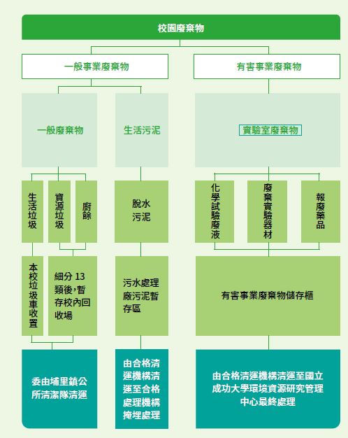 National Chi Nan University (NCNU) has established a comprehensive waste management system in compliance with the Waste Disposal Act and the Environmental Protection Administration (EPA) regulations. Campus waste is categorized into general industrial waste and hazardous industrial waste.